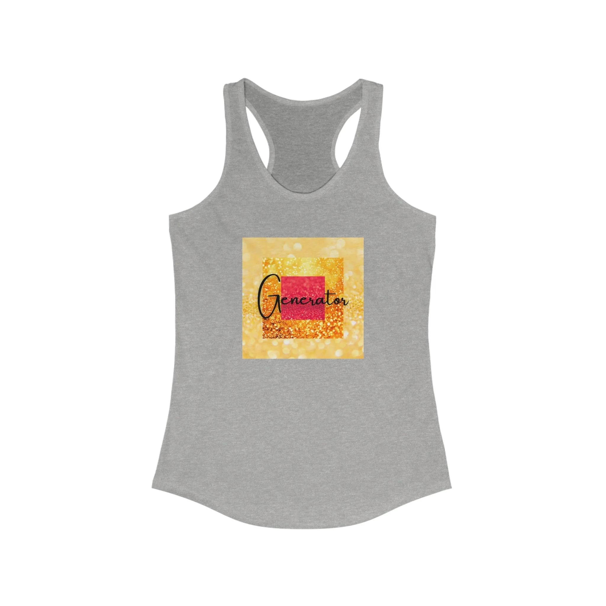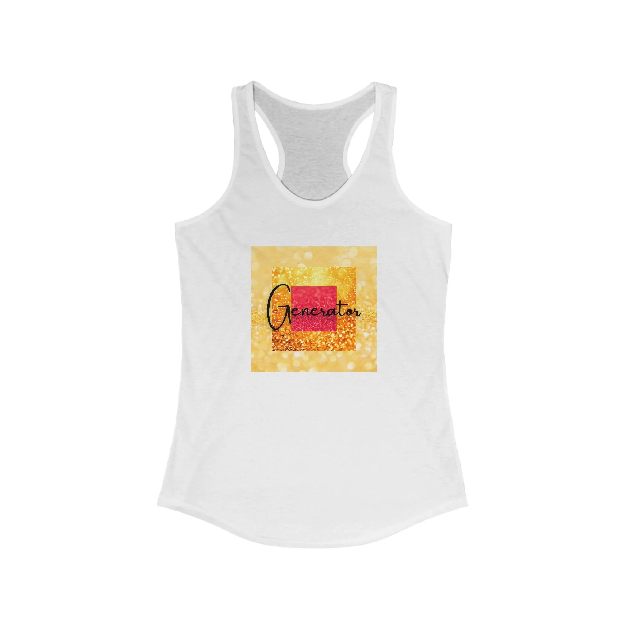 Let people see your love of Human Design with this Generator Racerback tank top! The design is inspired by the Generator's definition of the sacral center and how the Generator aura is open and enveloping. Get yours today for yourself or a Generator you love! (Generator design is a copyrighted image and cannot be used or duplicated.)