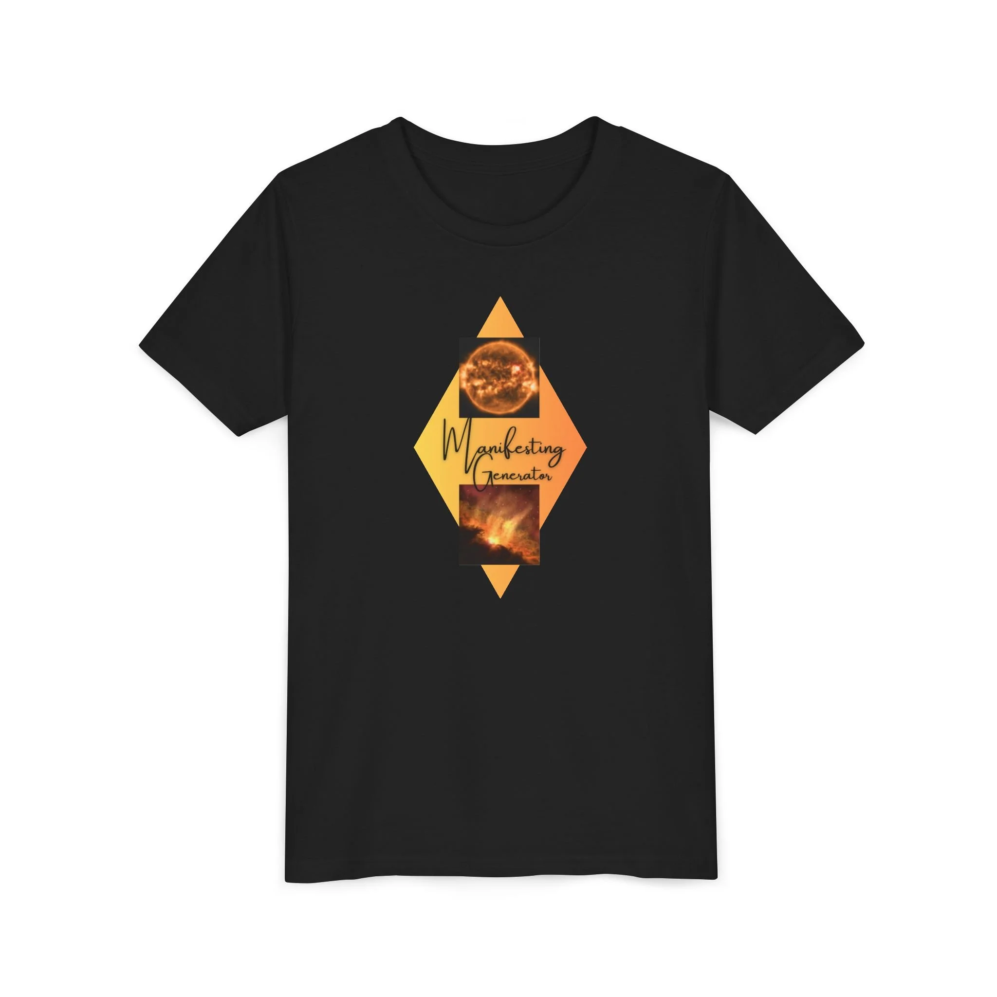 Let people see your love of Human Design with this Manifesting Generator Youth T-shirt! The design is inspired by the MGs definition of the throat center and sacral center and how they are inherently connected. You can also see images of space, a reference to the neutrino stream that gives us all our differentiated bodygraphs. Get yours today for yourself or a Man Gen you love! (Manifesting Generator design is a copyrighted image and cannot be used or duplicated.)