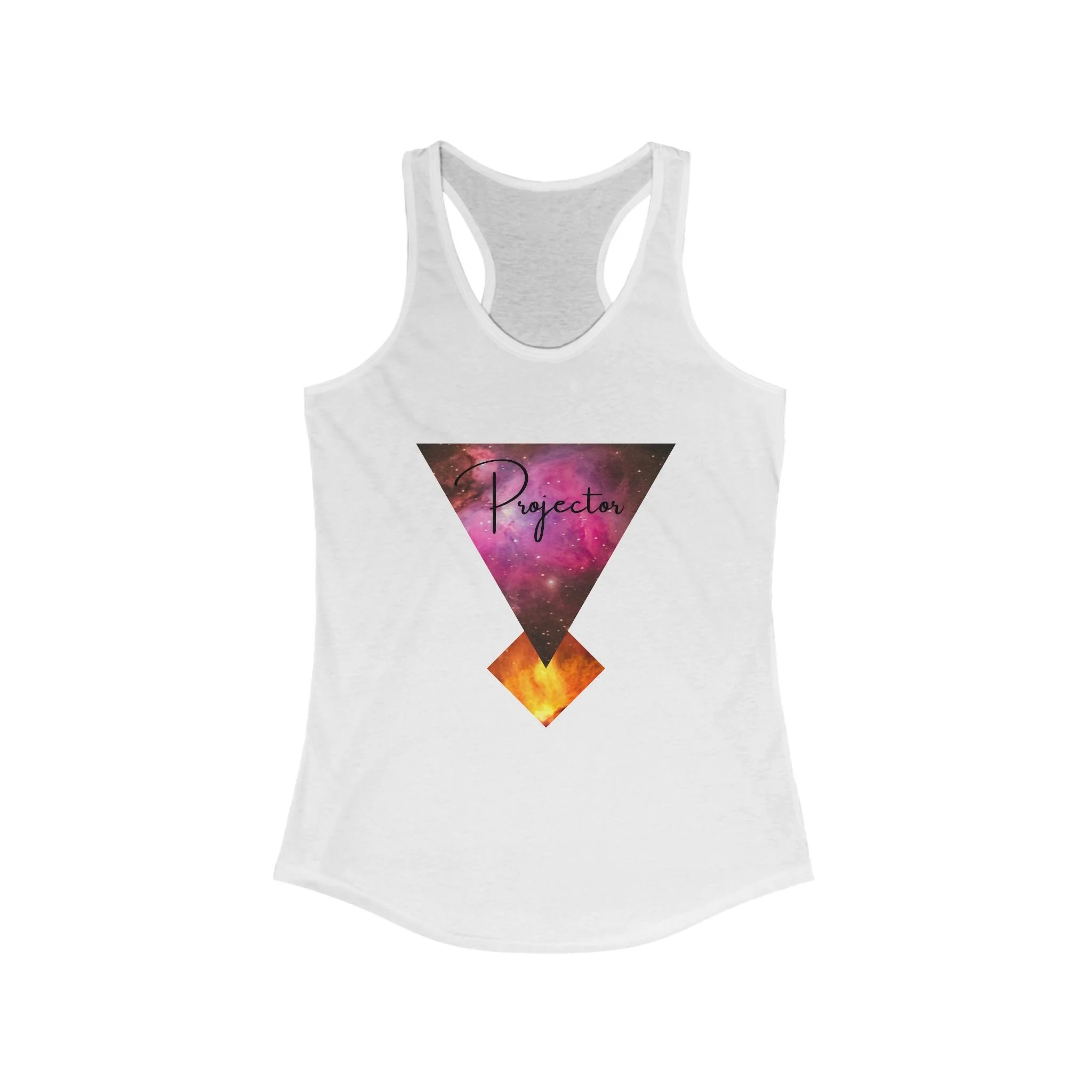 Let people see your love of Human Design with this Projector tank top! The design is inspired by the unique Projector aura that is focused on the G-center. You can also see images of space, a reference to the neutrino stream that gives us all our differentiated bodygraphs. Get yours today for yourself or a Projector you love! (Projector design is a copyrighted image and cannot be used or duplicated.)